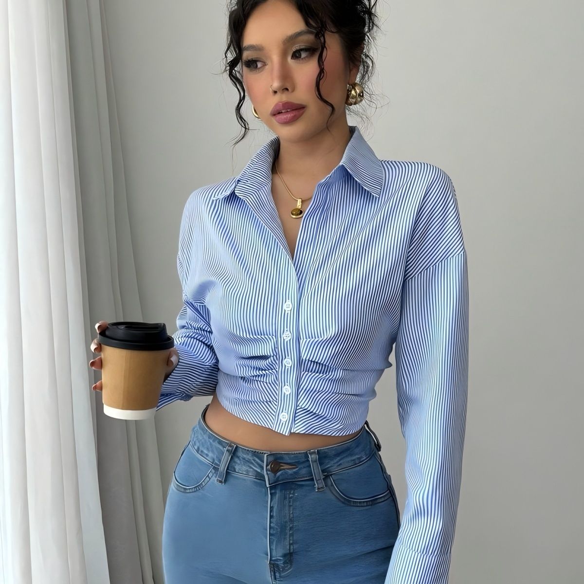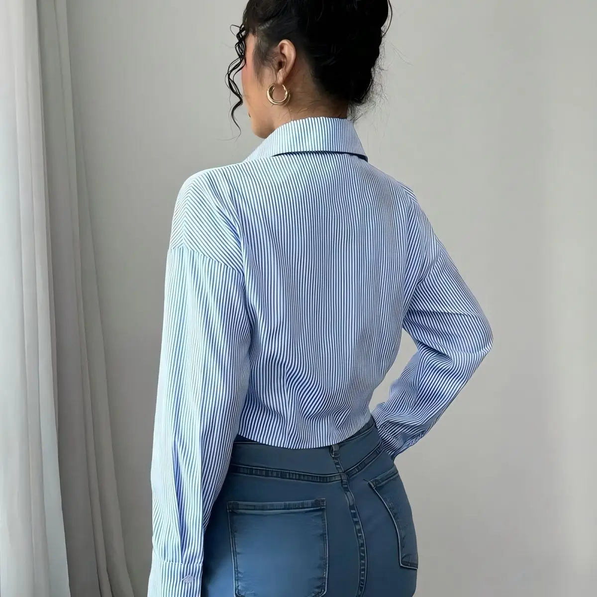 Cross-Border Amazon Fashion Versatile Elegant Striped Shirt