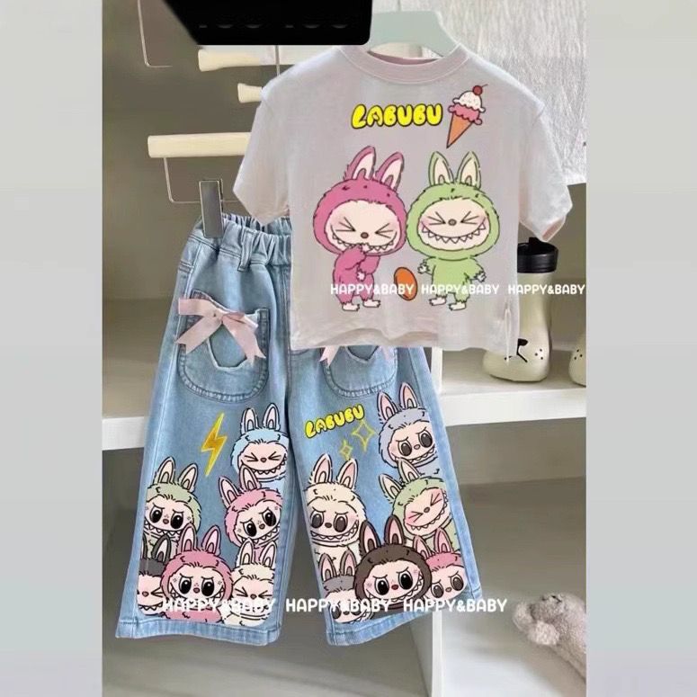 Be the first to review “Girls’ Summer Outfit LaBubu 2025 New Fashionable Children’s Short Sleeve Denim Pants Trendy Two-Piece Set”