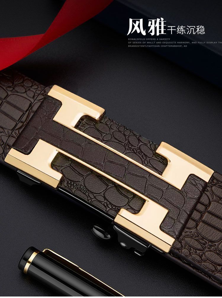 New Crocodile H Buckle Men’s Toothless PU Automatic Belt Versatile Business Casual Waist Belt