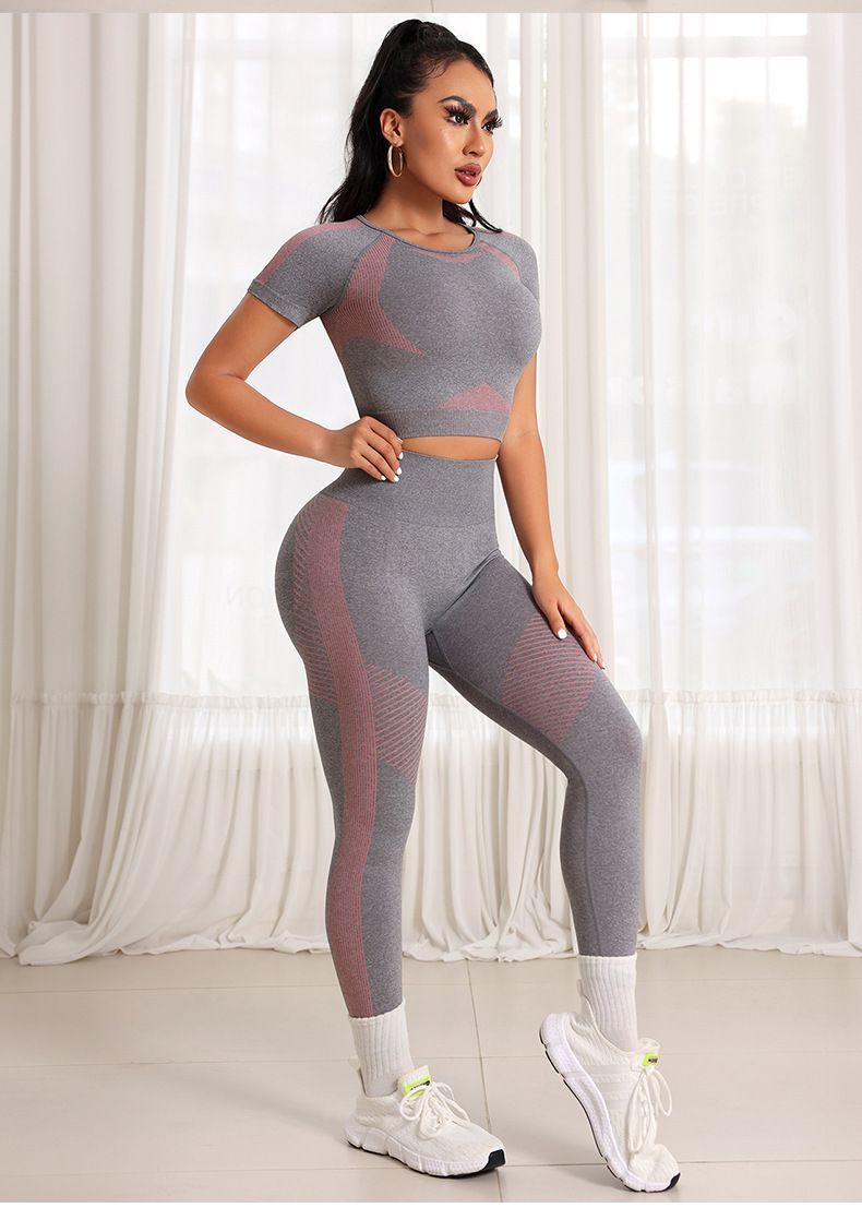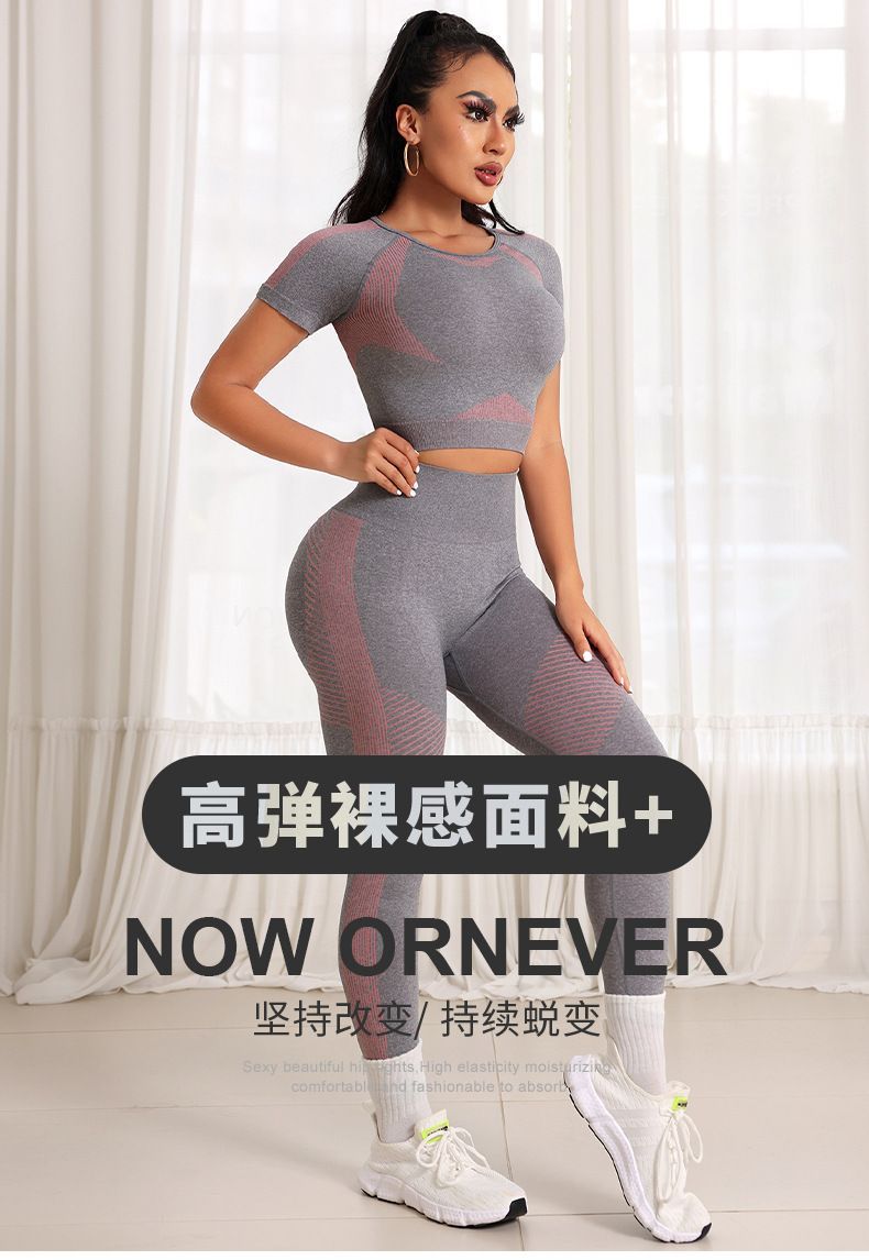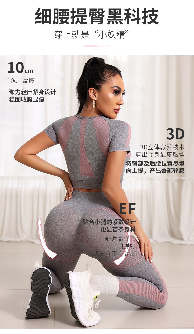Peach Hip Lift High Elastic Tight Yoga Suit Two-Piece Sportswear Fashion Casual Short Sleeve Nine-Point Pants