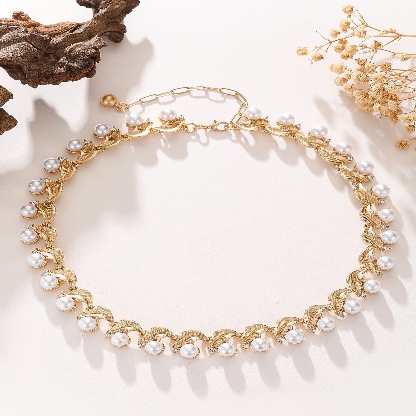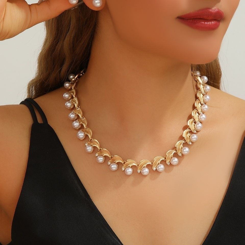 Vintage Style Pearl Jewelry Set: Pearl Necklace with Exquisite Enamel Craft Earrings, Necklace Set Optional Selection