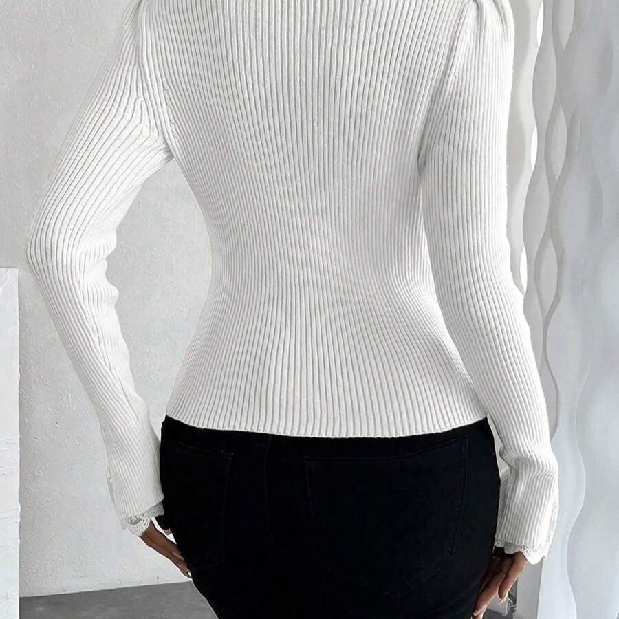 Be the first to review “White Lace Sleeve Knit Cardigan Slim Fit with Lace-Trimmed Cuffs V-Neck Fashionable New Inner Layer Item”